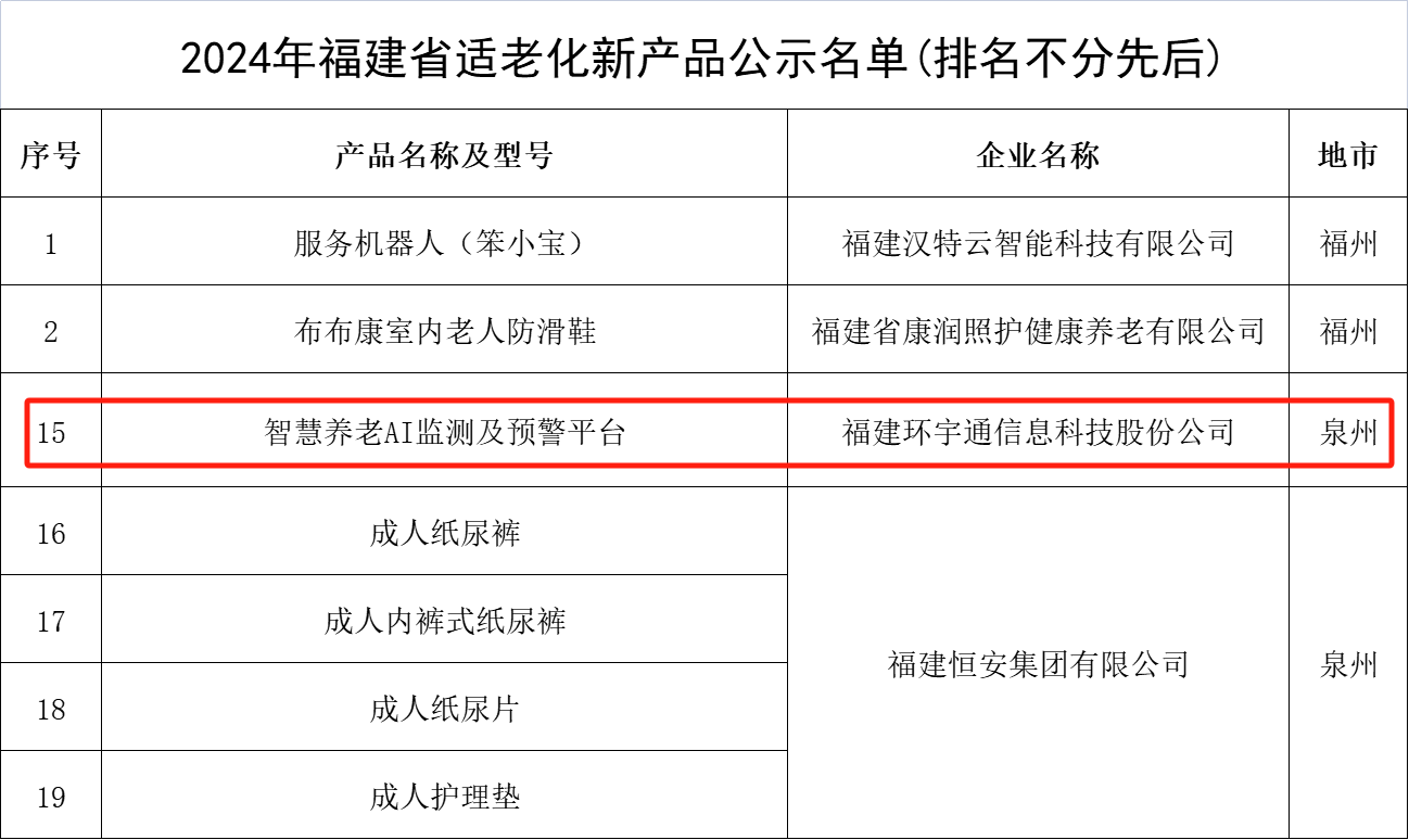 再获省级荣誉,1066vip威尼斯(中国)智慧养老AI监测及预警平台入选福建省适老化新产品名单